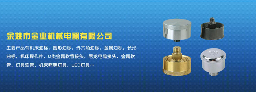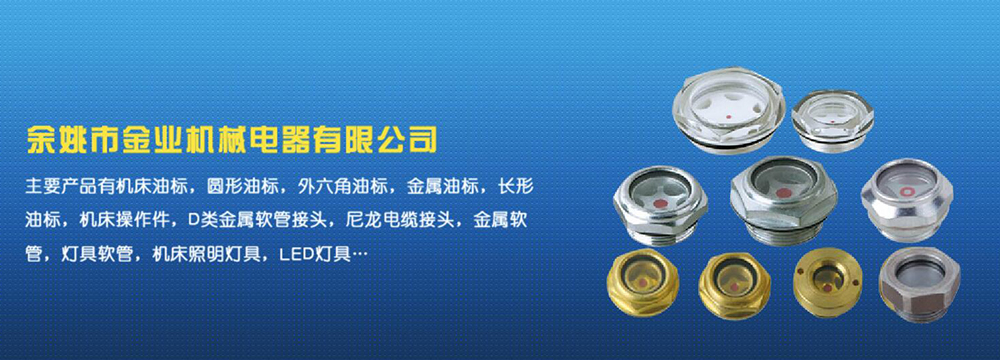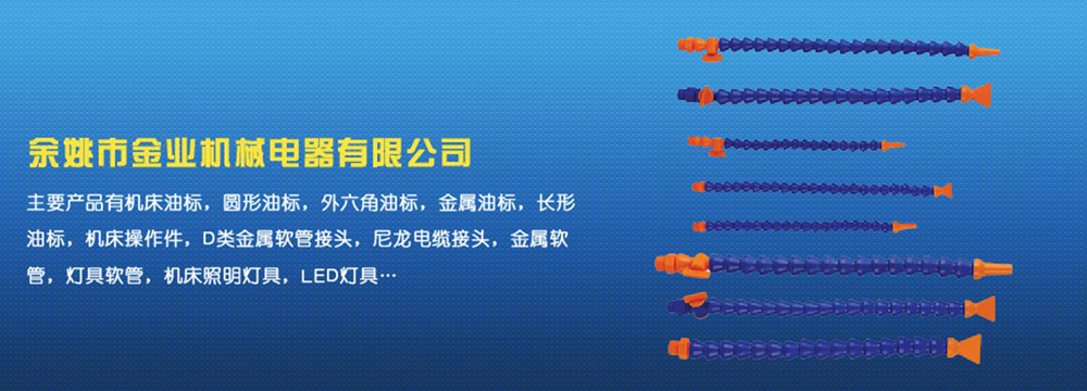 余姚市金業(yè)機(jī)械電器有限公司主要產(chǎn)品有機(jī)床油杯,圓形油標(biāo),外六角油標(biāo),金屬油標(biāo),長形油標(biāo),機(jī)床操作件,D類金屬軟管接頭,尼龍電纜接頭,金屬軟管,燈具軟管,機(jī)床照明燈具,LED燈具,DGT型線路軟管防護(hù)套,TL型鋼制電纜手軌,電纜尼龍拖鏈,可調(diào)塑鋼冷卻管等產(chǎn)品,規(guī)格齊全,全部自制。望國內(nèi)外客戶前來考察:共同發(fā)展…